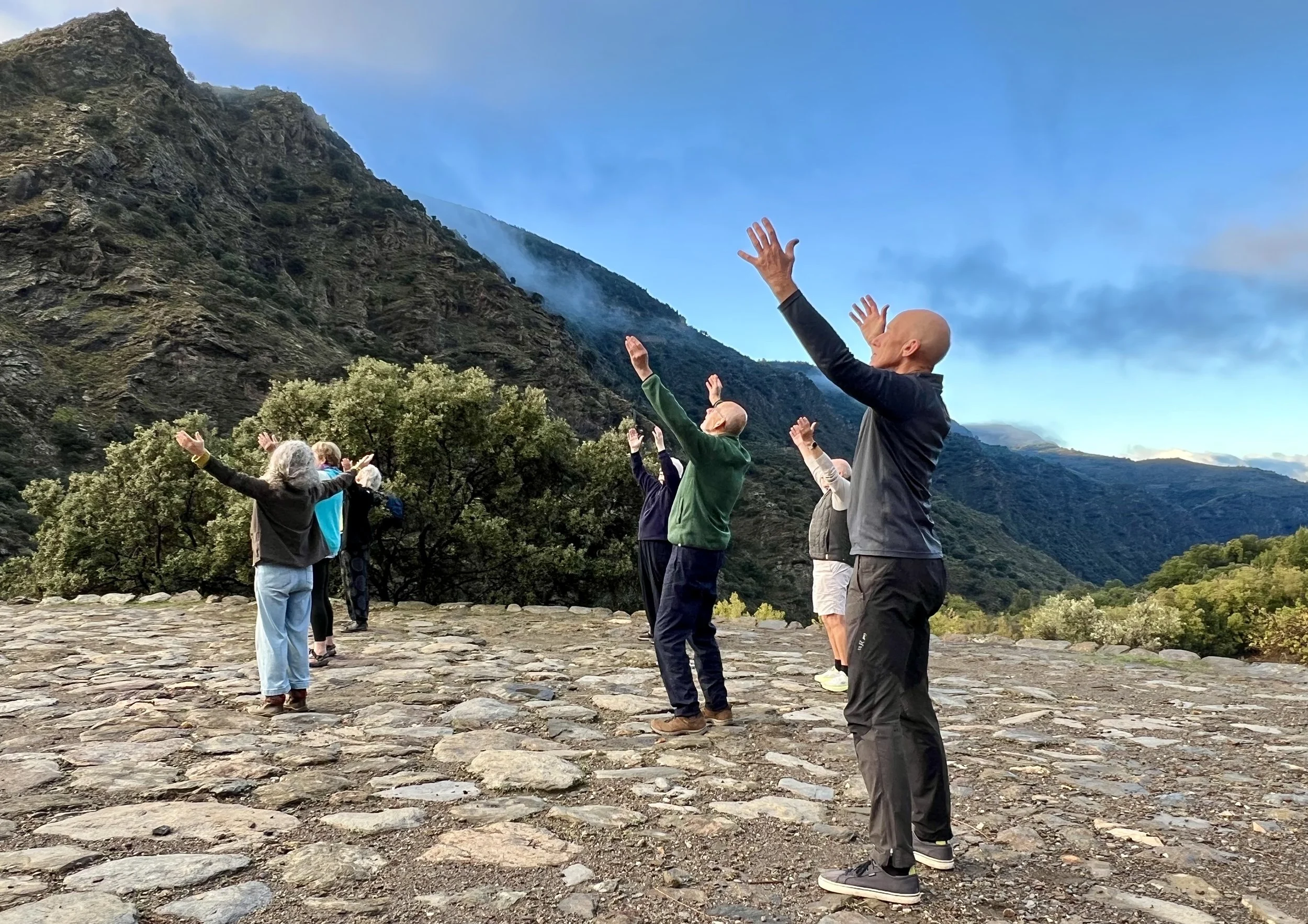 Greet the sunrise: practising Tai Chi each morning on the old threshing circle. The historic threshing circles (Eras) of the Alpujarra are ideal for Tai Chi. Each village has one, and the Era of Ferreirola is one of the best, ringed by mountains with wonderful views of the Trevelez river gorge.